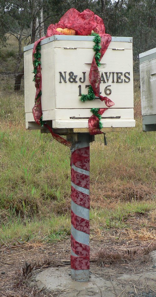 After viewing every mailbox, we then reduced the list to ten. This was no mean feat as the standard had indeed risen from last year’s efforts. After much deliberation we presented our shortlist to the judges. Pete Harrison, Mayor of Palerang Council and Darryl Bourke, President of the Bywong Community Association conferred for some time at our Christmas party before finally reaching a decision.